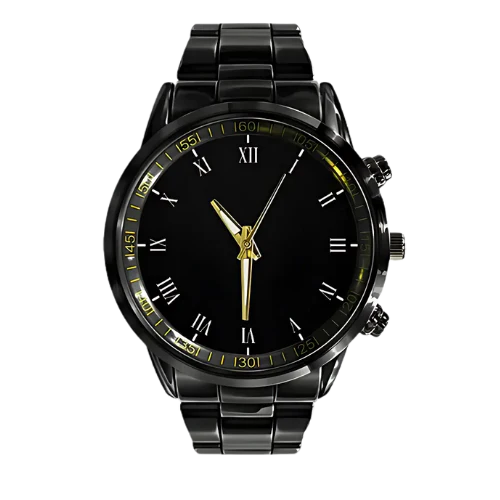 Sleek black finish combined with elegant gold-tone accents and a meticulously designed dial, offering a sophisticated and professional look.
